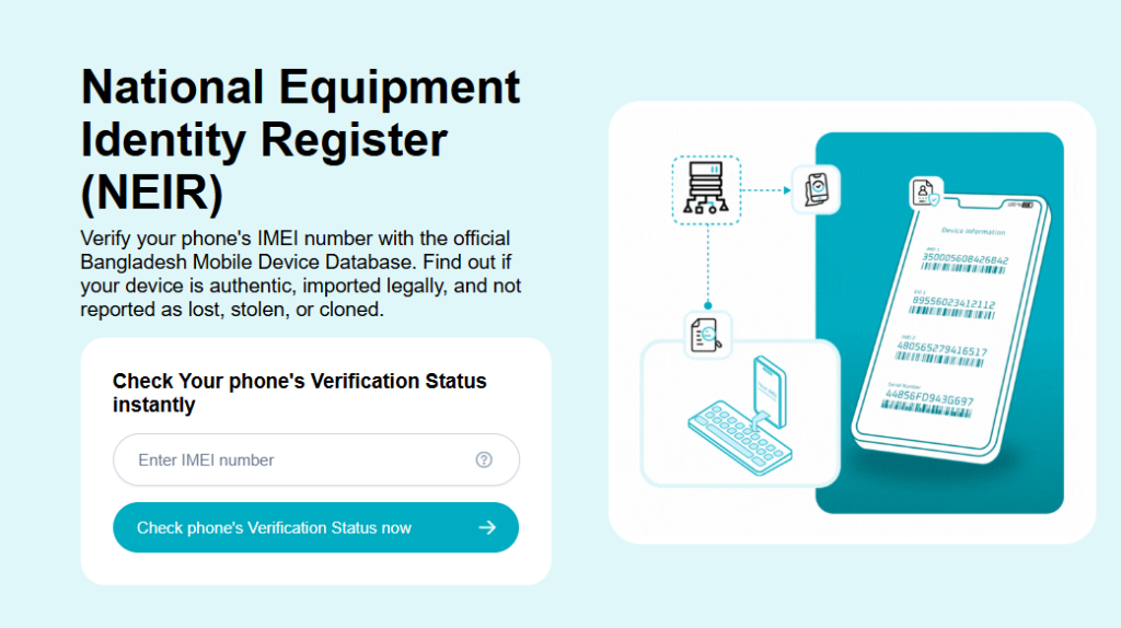 যারা অনলাইন সুবিধা নিতে চান, তারা neir.btrc.gov.bd ওয়েবসাইটে গিয়ে সিটিজেন পোর্টালে প্রবেশ করে ফোনের বৈধতা যাচাই করতে পারবেন। এছাড়াও যেকোনো মোবাইল অপারেটরের কাস্টমার কেয়ার সেন্টারে গিয়ে IMEI নম্বর দেখিয়ে যাচাই করার সুযোগ রয়েছে। এতে করে প্রযুক্তি সম্পর্কে কম ধারণা থাকা গ্রাহকরাও সহজে সেবা নিতে পারবেন।